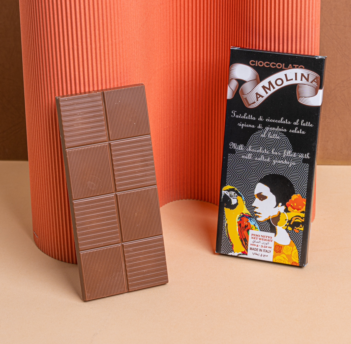Milk gianduja bar with salted .. Read MoreMilk Chocolate Bar Filled with Salted Gianduja