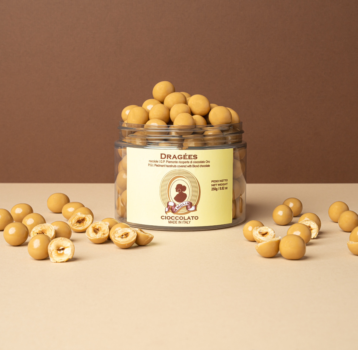 PGI Piedmont hazelnuts covered.. Read MoreBlonde chocolate dragees