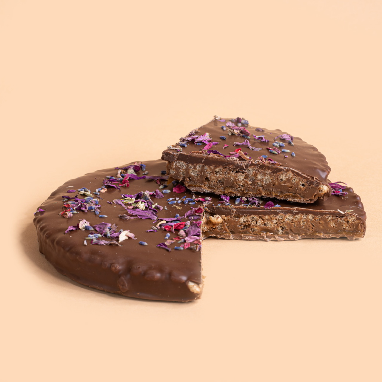 Delicate gianduja with PGI Piedmont hazelnuts, rice crispies and salted caramel, covered by milk chocolate